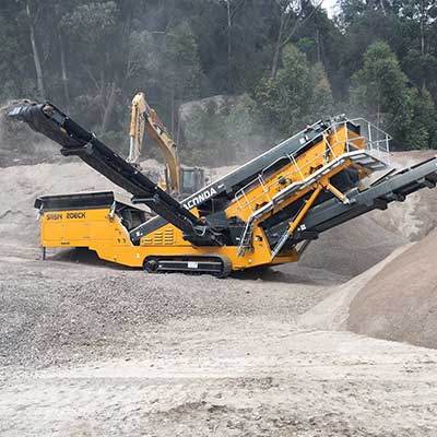 This versatile mobile screener can be tracked around sites for ease of use. The beauty about the SR520 is it takes into account all aspects of screen with a tipping grid to scalp away the bulky overs, the screen box for separation of up to four different sizes of end product and also built in conveyors that allow for constant stockpiling of product as the screen is fed.
